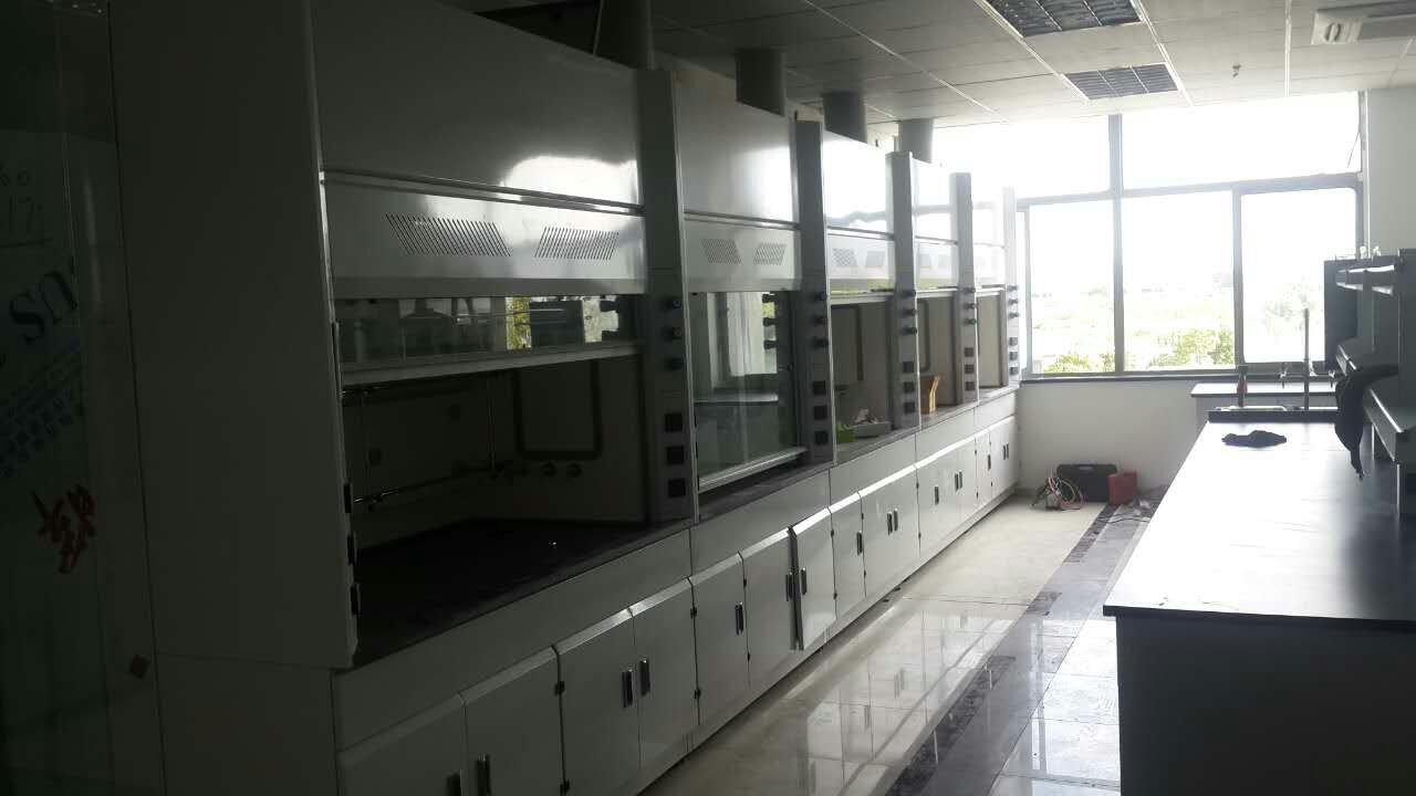 當天光線比較暗,合理利用空間布局,小空間作業(yè)全鋼實驗臺和全鋼通風柜整齊排列,一點也不影響日后的研發(fā)需求。